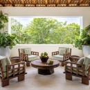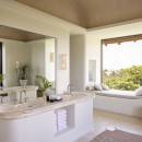 The Esencia Mansion, spanning four levels, showcases four generously sized ensuite bedrooms, each with separate entrances ensuring maximum privacy. Yet, they are internally connected, creating an ideal setting for a family or group vacation. The expansive master suite boasts a sunlit bedroom, a lavish bathroom featuring an indoor/outdoor plunge pool, a private fitness studio, and a secluded office.