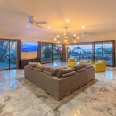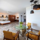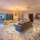 Step inside to discover refined elegance in the expansive living area, featuring an oversized sectional sofa and state-of-the-art entertainment system. Floor-to-ceiling windows showcase breathtaking jungle views, suffusing the space with natural light and serenity. Adjacent, a sophisticated dining area offers an ideal setting for intimate meals amid stunning jungle backdrops.