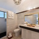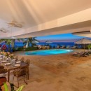Outside, Villa Castillo beckons with a spacious heated pool, perfect for leisurely swims or sun-soaked lounging while indulging in poolside cocktails. A convenient pool washroom ensures comfort throughout the day.