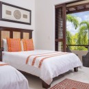 Bedroom 2: Bedroom with two queen-size beds, ceiling fan,  A/C, TV, WiFi, ocean view, access to the terrace, and en-suite bathroom with shower, vanity and WC. 2 guests maximum.
