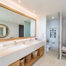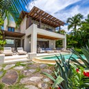 This two-level residence offers ocean vistas from nearly every room. The luxurious master bedroom includes indoor and outdoor showers, a walk-in closet, fine marble flooring, and an expansive outdoor terrace with a sitting area that overlooks the ocean, perfect for enjoying the spectacular Punta Mita sunsets during your stay.