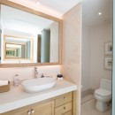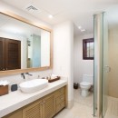 On the upper level, marble walkways connect the master bedroom with two guest bedrooms, while a fourth bedroom is located on the lower level towards the back of the residence. Each bedroom features large American-sized beds—three with kings and one with two queens—making it ideal for both friends and family.