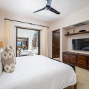 Bedroom 1: Master bedroom with a king-size bed, ceiling fan, A/C, TV, WiFi, safe, walk-in closet, sea view, private terrace, and en-suite bathroom with bathtub, indoor/outdoor showers, double vanity and WC. 2 guests maximum.