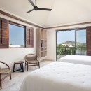 Bedroom 4: Bedroom with two queen-size beds, ceiling fan,  A/C, TV, WiFi, ocean view, access to the terrace, and en-suite bathroom with shower, vanity and WC. 2 guests maximum.