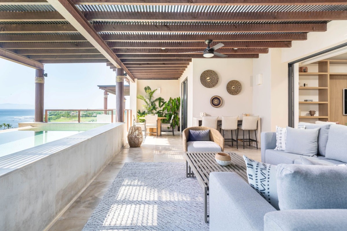 Perched on a gentle slope with panoramic views of Banderas Bay, Condo La Cima is an exquisite penthouse retreat in the exclusive El Encanto community of Punta Mita. This sophisticated sanctuary seamlessly blends elegant design with the region’s breathtaking natural beauty, offering an unparalleled setting for relaxation and adventure.