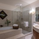 Bedroom 4: Bedroom with two queen-size beds, ceiling fan, A/C, WiFi, and en-suite bathroom with shower, vanity and WC. 2 guests maximum.