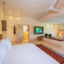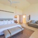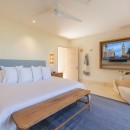Bedroom 1: Master bedroom with a king-size bed, lounge area, ceiling fan, A/C, TV, WiFi, sea view, access to the terrace, and en-suite bathroom with bathtub/shower, double vanity and WC. 2 guests maximum.