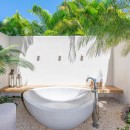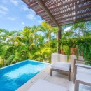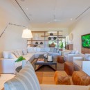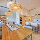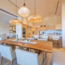 Inside, you'll find a comfortable and spacious modern Mexican interior design, showcasing neutral tones complemented by vibrant, jewel-toned accents. The villa highlights traditional handwoven Mexican textiles, captivating artwork, and custom-designed furniture, creating a harmonious blend of elegance and cultural charm.