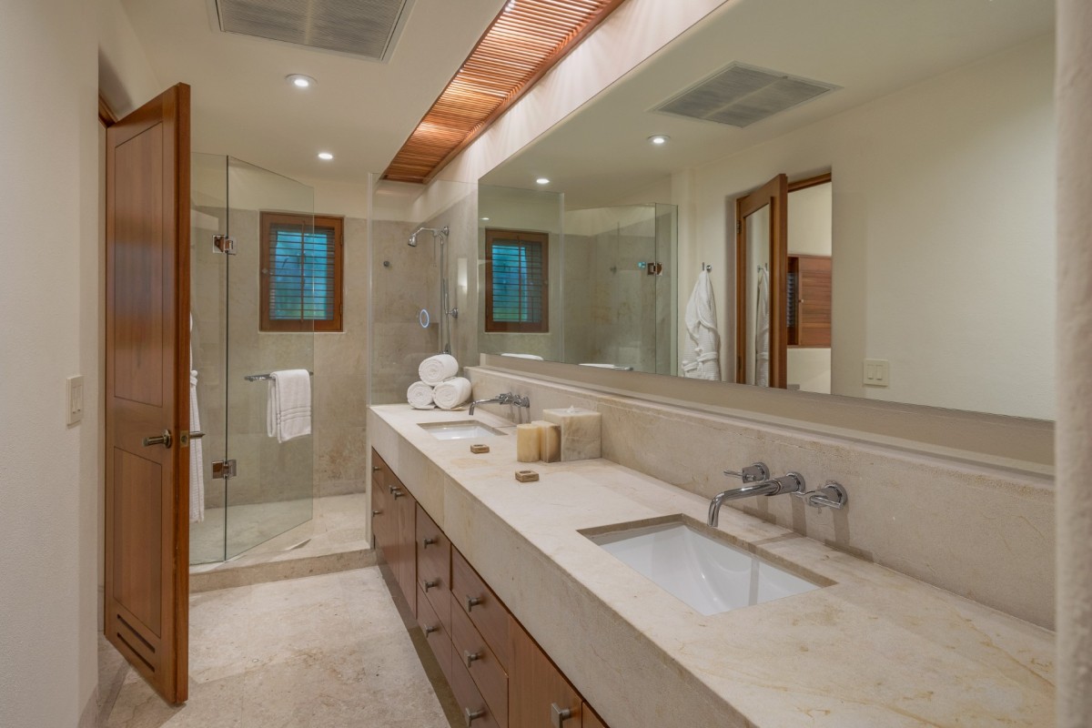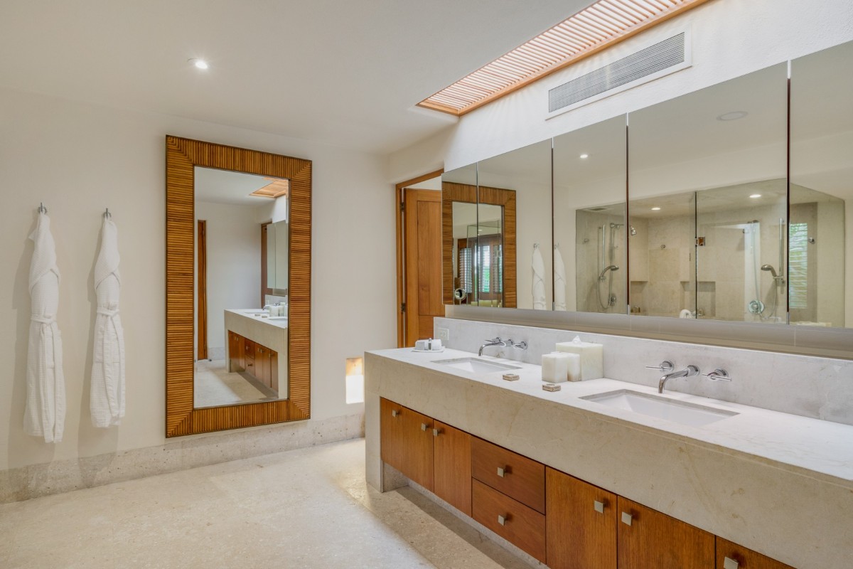 Villa Eluna invites guests to experience refined indoor-outdoor living enhanced by contemporary design and sweeping ocean vistas. This spacious residence features five elegantly appointed bedrooms, each complete with its own en-suite bathroom. Two of the bedrooms open up to stunning ocean views, while the remaining suites overlook vibrant tropical gardens, creating an atmosphere of serenity and relaxation throughout the home.