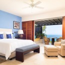 Bedroom 4: Bedroom with king-size bed, A/C, ceiling fan, TV, WiFi, ocean view, access to terrace, and en-suite bathroom with bathtub, shower, vanity and WC. 2 guests maximum