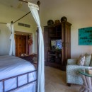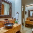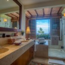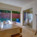 Bedroom 1: Master Bedroom with a king-size bed, ceiling fan, A/C, TV, WiFi, sitting area, walk-in closet, access to the terrace, and en-suite bathroom with bathtub, outdoor shower, double vanity and WC. 2 guests maximum.