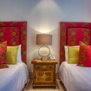 Bedroom 3: Bedroom with two single beds, ceiling fan, A/C, TV, WiFi, and en-suite bathroom with shower, vanity and WC. 2 guests maximum.