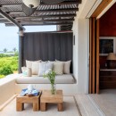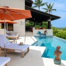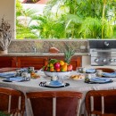 The shaded veranda, with its plush seating, offers sweeping views of the ocean and swaying palm trees, evoking a sense of warm, lived-in luxury. It’s a place where every corner feels curated just for you, with the sparkling ocean beyond framed by lush gardens and the gentle sounds of birdsong. A dedicated housekeeper ensures that your stay is effortless, starting with a perfectly prepared breakfast tailored to your preferences.