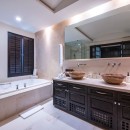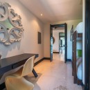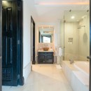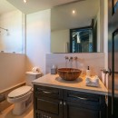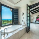 Each of the three bedrooms has an en-suite bathroom, with an additional bathroom for extra convenience. The master bedroom also opens onto the balcony and features ocean views. The master bath is elegantly appointed with double vanities, a walk-in shower, and a jacuzzi soaking tub. The other two bedrooms feature relaxing garden views. All linens and towels are provided.