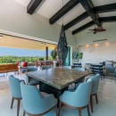 With breathtaking views of the Pacific Ocean, guests hardly want to leave the spacious balcony, which is furnished with relaxing seating and a dining table. Guests can also bring the outside into them with the sliding glass pocket doors that transform the open floorplan interior living space and bring the tropical air and sea breezes inside.