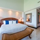 Bedroom 3: Bedroom with two double beds, ceiling fan, A/C, TV, garden view and en-suite bathroom with shower, vanity and wc. 2 guests maximum.
