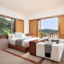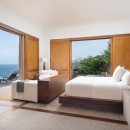 Bedroom 6: Bedroom with two queen-size beds, A/C, TV,  WiFi, ocean view, terrace, private pool, and en-suite bathroom with shower, vanity and WC. 2 guests maximum.