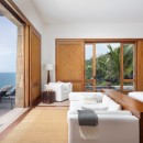 The villa’s open-concept living space seamlessly merges indoor and outdoor environments, allowing guests to immerse themselves in the tropical surroundings. Winding stone pathways connect the suites, while expansive ocean panoramas evoke a sense of serenity and wonder. With direct access to a secluded private beach, guests can indulge in the finest coastal living in an unparalleled setting.