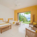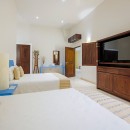 Bedroom 6: Bedroom with two queen-size beds, ceiling fan, A/C, WiFi, walk-in closet, ocean view, garden access, and en-suite bathroom with shower, vanity and WC. 2 guests maximum.