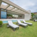 The exterior of this property is defined by fine alabaster stonework, slatted timber shading, and secluded relaxation spots, ensuring each guest can find their perfect retreat. Enjoy a book on a hidden balcony, savor a delicious breakfast on the Bond-esque shade terrace, or stroll through the verdant garden, taking in the sounds of the surf and distant birdsong. The thoughtful room decor incorporates soft pastels, panoramic sliding doors, and rich furnishings, combining ample space and sea views to create a calming atmosphere. Revitalize with an afternoon in the spa room, steam room, hot tub, or fully-equipped media room. Work up an appetite in the gym before enjoying an evening of wine and delicious food in the open-air dining area.