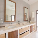 Bedroom 5: Bedroom with two queen-size beds, ceiling fan, A/C, WiFi, walk-in closet, ocean view, garden access, and en-suite bathroom with shower, vanity and WC. 2 guests maximum.