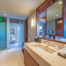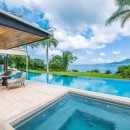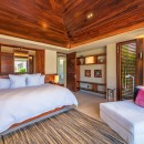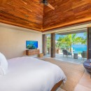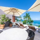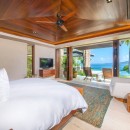 Go inside the villa and the beauty of the décor continues. The living room gazes out at the sea and the pool and a great room features a bar and a dining area. Nearby, the gourmet kitchen is a delight for making meals or snacks, and the bedrooms are also miniature masterpieces of design and décor. Each features a king bed, a private terrace access and great views, and a large and private bathroom. The master suite features a plunge tub, too.
