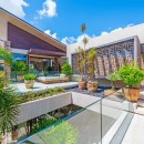 Visitors will love the amount of greenery that surrounds them at all times with potted plants crating a nice contrast to the stone and glass. There is the upper sun deck as well as the sunbed around the pool, and there is the verandah where al fresco dining and lounging are great options at any time.