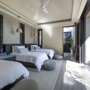 Bedroom 4: Bedroom with two queen-size beds, ceiling fan, A/C, TV, WiFi, garden view, and en-suite bathroom with shower, vanity and WC. 2 guests maximum.