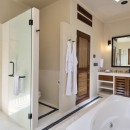 There are five Master bedrooms, remarkably luxurious, spacious and placed to optimize the setting of the villa and the views outside. There are five more suites with private terraces or patios including one children bedroom with bunkbeds. All have entertainment systems and ensuite baths.