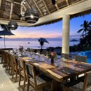 Enjoy three gourmet meals each day prepared by your private chef. Never worry about any of the housekeeping requirements thanks to your housekeeping team, and enjoy concierge-like service from the property manager. Travelers need only arrive at the lushly landscaped property and begin enjoying such premium amenities as the infinity-edge pool with its curved form and stone terrace. Two large outdoor palapas fully equipped with a full chefs kitchen, outdoor dining for up to 28 guests, and in the center are several lounging and sunbathing spaces. The pool area also has a pergola that is an outdoor lounge with full banquette sofa and the enormous lawn will quickly become a favorite spot for lounging, stargazing, sunset viewings and more.