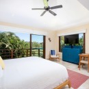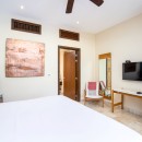 Bedroom 2: First floor Master bedroom with a king-size bed, ceiling fan, A/C, TV, WiFi, walk-in closet, balcony, and en-suite bathroom with bathub, shower, double vanity and WC. 2 guests maximum.