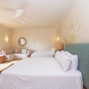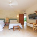 Bedroom 4: Bedroom with two double beds, ceiling fan, A/C, WiFi, TV, garden view, terrace and en-suite bathroom with shower, vanity and WC. 2 guests maximum.