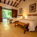 Bedroom 5: Bedroom with two double beds, ceiling fan, A/C, TV, WiFi, and en-suite bathroom with shower, vanity and WC. 2 guests maximum.