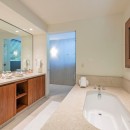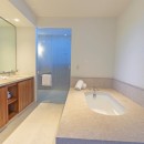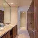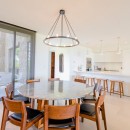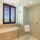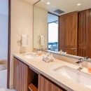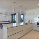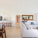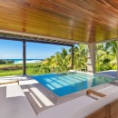 After all, it features an astonishing array of amenities in addition to its access to neighborhood facilities. There is a remarkable infinity edge pool beneath the verandah and flanked by an oversized banquette sofa. All of this is oriented towards the astonishing views of the course and the sea just beyond. The pool is actually within the front portion of the great room, and this includes an open floor plan that maps out several lounging spaces. There is also a dining area, a formal TV lounge with entertainment system and the open air kitchen. With a large breakfast bar and premium stainless appliances, it is a chef’s delight.