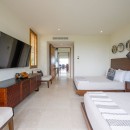 Bedroom 3: Bedroom with two double beds, A/C, ceiling fan, TV and en-suite bathroom with bathtub, shower, vanity and WC. 2 guests maximum.