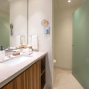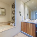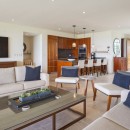 After all, it has amenities not typical of a condominium-style property, including an infinity edge plunge pool on an oversized balcony, a full sun deck with lounges, and multiple balcony spaces to take in the astonishing views of the golf course and the sea just beyond. Of course, it doesn’t end with the pool and outdoor living spaces (including an al fresco dining area). There is also the great room, a masterpiece of design and stylish décor that is entered through floor to ceiling glass doors and which features an open floor plan that allows the views and sea air inside and to every corner. Enjoy this from the oversized lounge and TV area, the formal dining room (which opens to another balcony with garden views), and the chef’s quality kitchen. With its high-end stainless appliances and full array of gear, it is a joy to use for making drinks, meals or snacks.