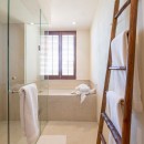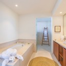 Bedroom 1: Master bedroom with a king-size bed, A/C, TV, shared patio, oceanview , and en-suite bathroom with indoor and outdoor showers, bathtub, double vanity, and WC. 2 guests maximum