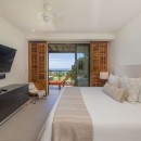 Bedroom 1: Master bedroom with a king-size bed, A/C, ceiling fan, TV, WiFi, sea view, terrace, and en-suite bathroom with bathtub, vanity, and WC. 2 guests maximum.