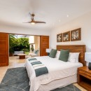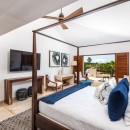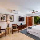Bedroom 2: Ground floor Master bedroom with a king-size bed, ceiling fan, A/C, TV, WiFi, walk-in closet, private terrace, and en-suite bathroom with outdoor bathtub, double shower, vanity and WC. 2 guests maximum.