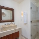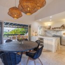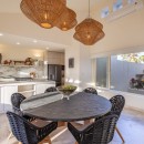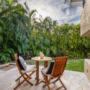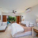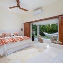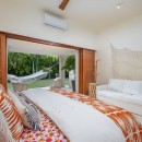 Perched high among the palm trees, the patio area, complete with a plunge pool, captures cool breezes and the soothing sounds of local birds and surf. This spacious haven boasts several cozy seating areas and three umbrellas for shade. The sunsets here are magnificent, and the moonrise and star-gazing are equally magical.