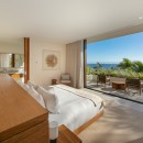 Bedroom 1: First floor bedroom with a king-size bed, A/C, WiFi, TV, private terrace with ocean view, and en-suite bathroom with bathtub, shower, vanity and WC. 2 guests maximum
