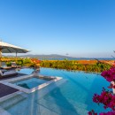 Guests revel in sweeping ocean vistas and mesmerizing sunrises from expansive private decks, patios, balconies, and gardens. An expansive pool and jacuzzi beckon relaxation, complemented by an outdoor entertainment area complete with a BBQ grill.