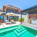 The home has a private pool with breathtaking views of the Pacific Ocean. In addition, Perla encourages outdoor living with hammocks, lounge chairs, an outdoor kitchen, an alfresco dining table that can fit everyone, and plenty of green space. In addition, the upstairs master bedroom has a peaceful patio, perfect for a morning cup of coffee or evening cocktail to watch the sunset over the sea.
