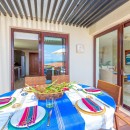 Even the interior welcomes the tropical breezes with glass pocket doors that open the living room up to the outdoor space. The open floorplan encourages family togetherness between the outdoors, living room, dining room, and gourmet kitchen. The kitchen is fully equipped for guests to prepare their own culinary creations or hire one of our private chefs to do the cooking for you. Housekeeping visits each day during your stay.