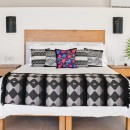 Bedroom 1: Ground floor Master bedroom with a king-size bed, sofa, ceiling fan, A/C, TV, WiFi, safe, access to pool terrace, and en-suite bathroom with shower, double vanity and WC. 2 guests maximum.