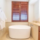 Bedroom 2: Bedroom with two double and one bunk beds, ceiling fan, A/C, WiFi, TV, ocean view, and en-suite bathroom with bathtub and shower, vanity and WC. 4 guests maximum.