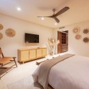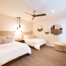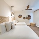 Bedroom 3: Bedroom with two queen beds, WiFi, A/C, ceiling fan, and en-suite bathroom with bathtub, rain shower, vanity, and WC. 2 guests maximum