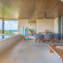 The design features earthy tones and a neutral color palette, perfectly complementing the breathtaking ocean views. The expansive pool terrace and lounge area create an inviting space for memorable moments with family and friends.