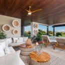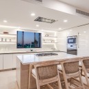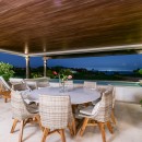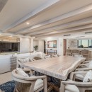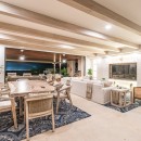 Watch stunning sunrises from the comfort of your own abode, whether you're taking a dip in the infinity pool, dining at the spacious 10-seat table, or lounging on the outdoor furniture. Inside, a generously appointed living area awaits, adorned with upscale furnishings and a gourmet kitchen boasting Sub Zero and Wolf appliances, as well as a convenient breakfast bar for casual meals.