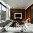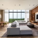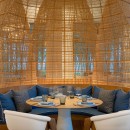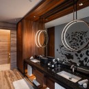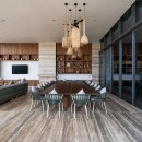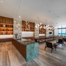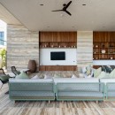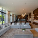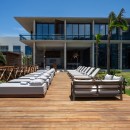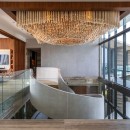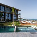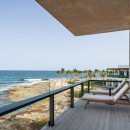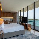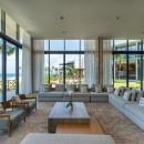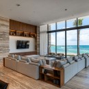 As you enter through the impressive floor-to-ceiling wooden doors, you’ll be captivated by the villa’s meticulous design. The modern, stylish decor integrates local wood and fabrics, creating a tropical ambiance that’s complemented by expansive glass windows showcasing breathtaking ocean views. A striking cement spiral staircase and a tropical-style rope chandelier are focal points that beautifully contrast and harmonize. The V-shaped architecture ensures that every inch of the 14,452 sq. ft. space is thoughtfully utilized, with the upper floor dedicated to elegant suites and the ground floor designed for communal enjoyment.